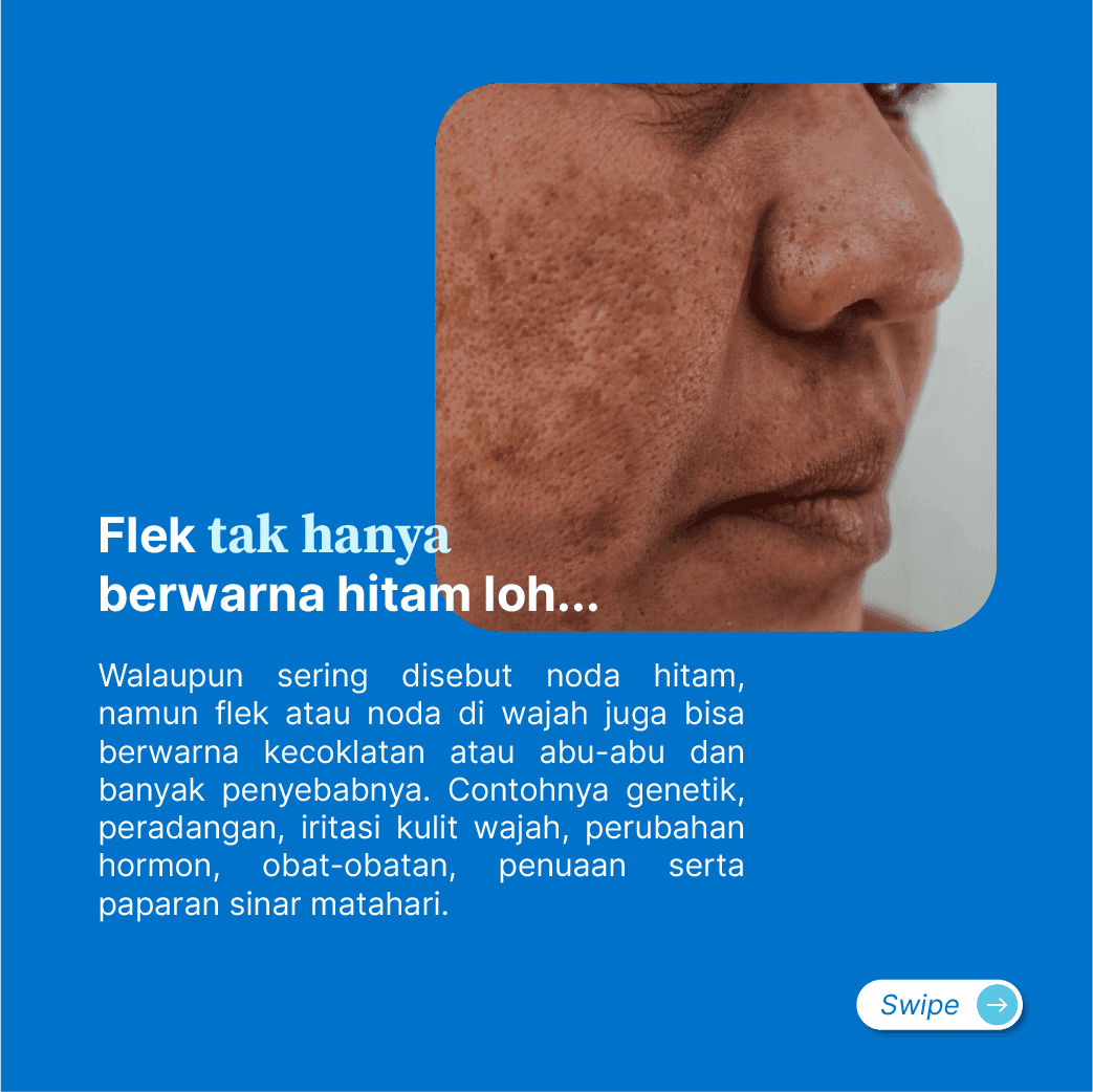 Bercak hitam di wajah bisa dipudarkan! Dapatkan skincare medis formulasi dokter berpengalaman yang aman serta efektif untuk tipe kulitmu dan ucapkan selamat tinggal pada Flek di wajahmu