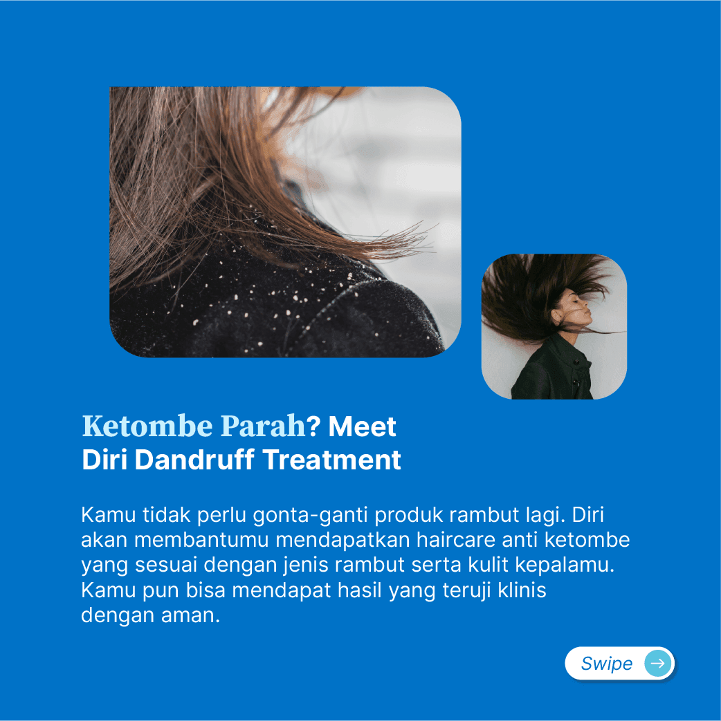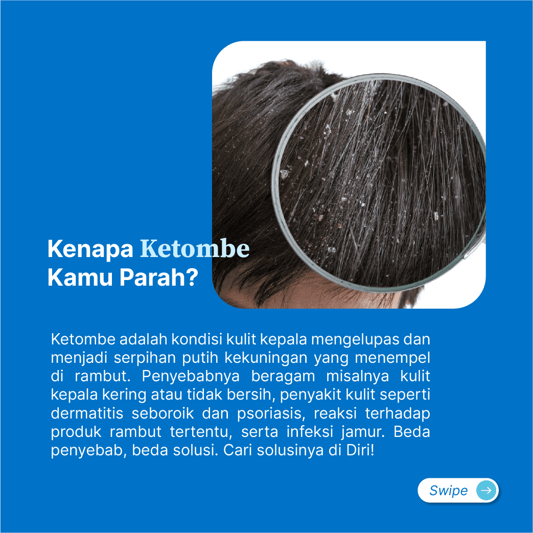 Ketombe adalah kondisi kulit kepala mengelupas dan menjadi serpihan putih kekuningan yang menempel di rambut. Kulit kepalamu akan menjadi terasa gatal dan bersisik. Ada beragam faktor pencetus ketombe. Kamu bisa konsultasi dengan dokter untuk temukan produk perawatan rambut yang solutif dan aman sesuai dengan penyebab ketombemu.